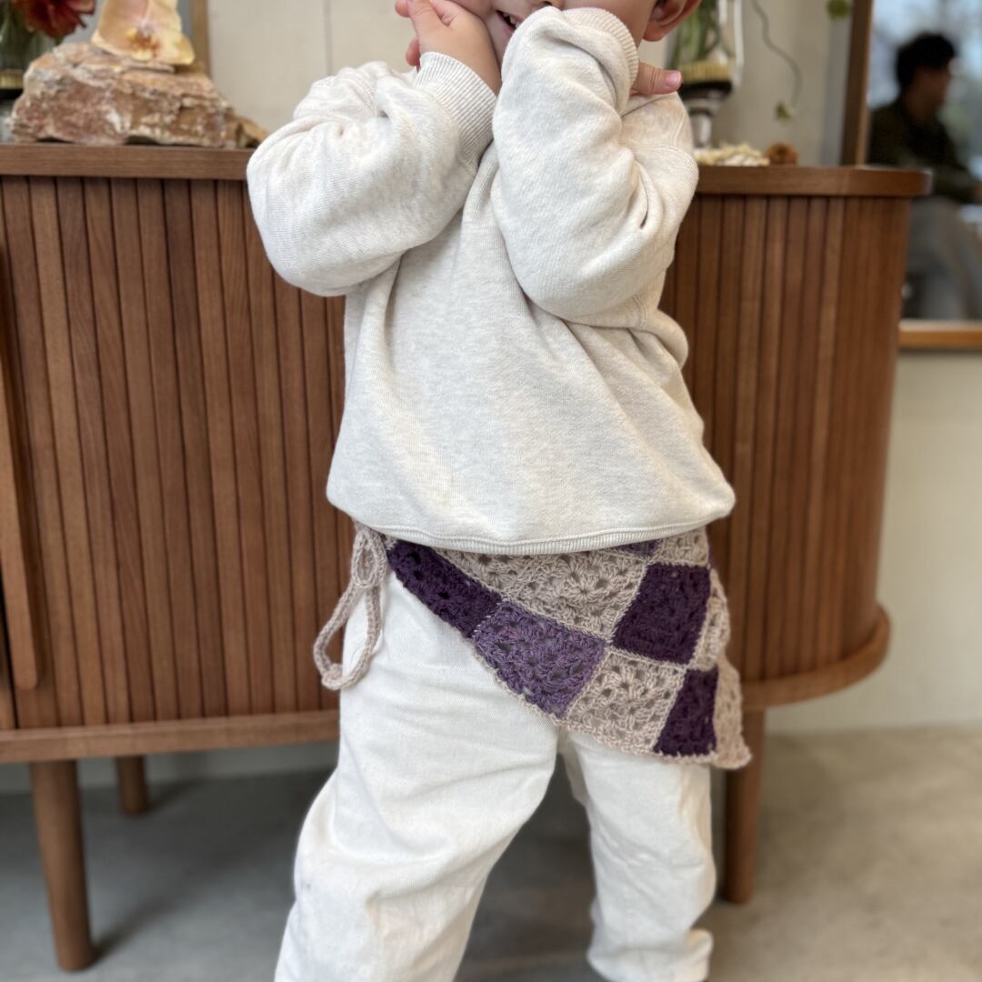 大量生産では見えにくくなってしまった「作ること」や「選ぶこと」の意味を、もう一度自分の手の感覚でたしかめながら、子どもへの愛情をきっかけにはじめた編み物が、他の誰かの大切な日常にもそっと届いていく── そんな循環を目指しています。