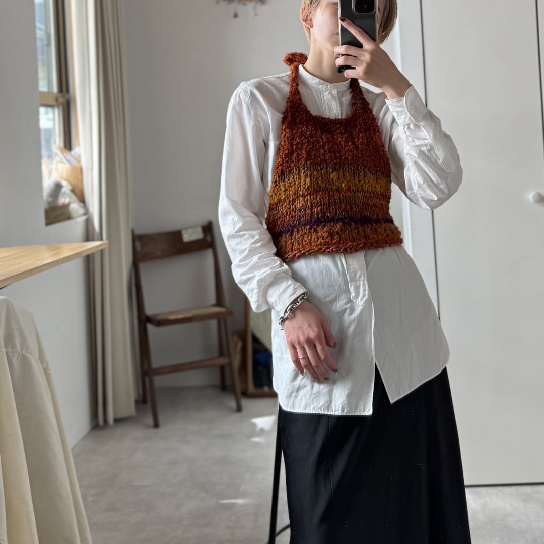 どんなインナーとも相性抜群の、重ねるだけで“今っぽさ”が出る、金太郎シルエットのニットトップ。