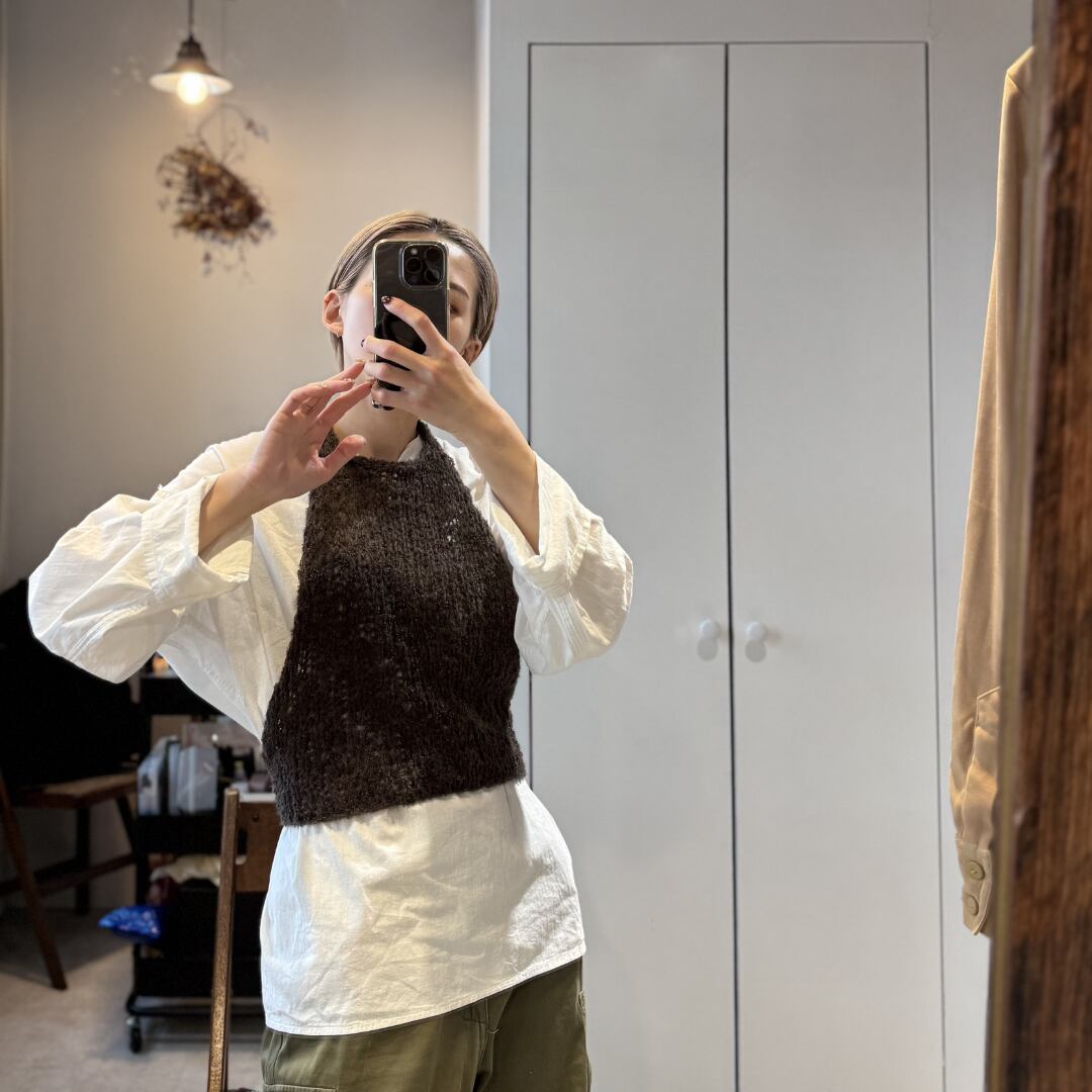 どんなインナーとも相性抜群の、重ねるだけで“今っぽさ”が出る、金太郎シルエットのニットトップ。