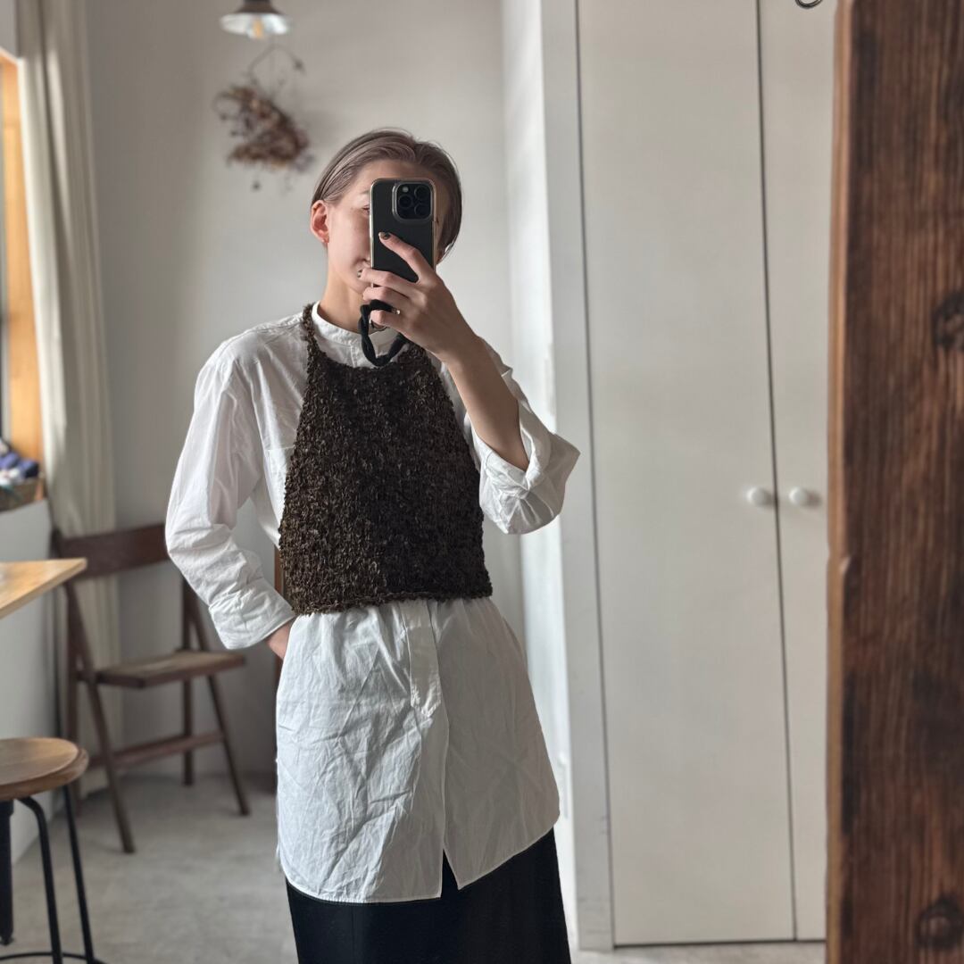 いつものスタイルに、さりげなく個性とニュアンスをプラスしてくれる一枚です。