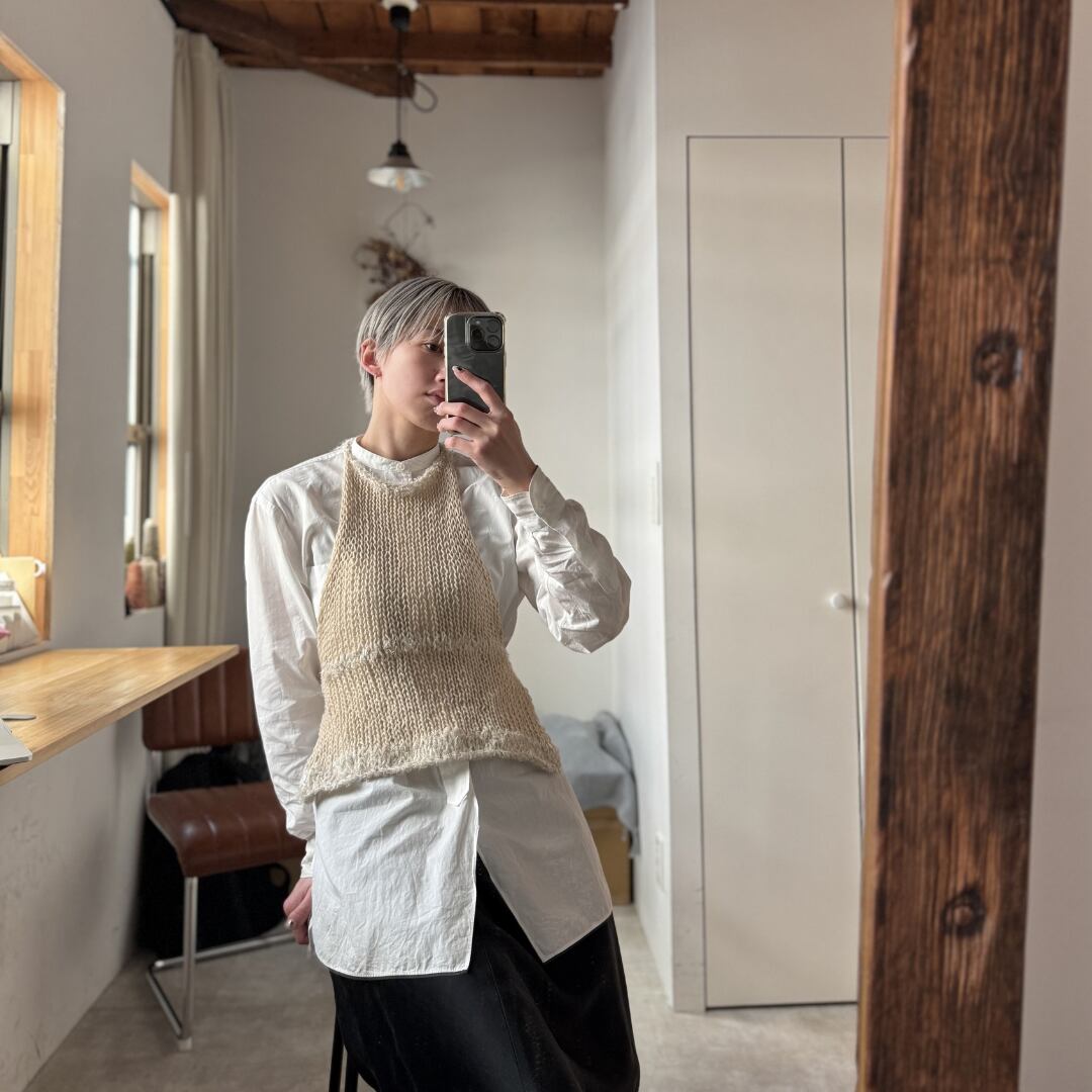 Taro topはざっくりとした編み地のため、伸びやすい特性があります。