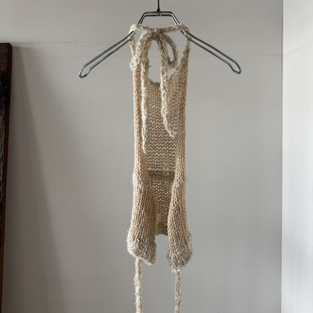 手編みのホルターネックニットトップ。