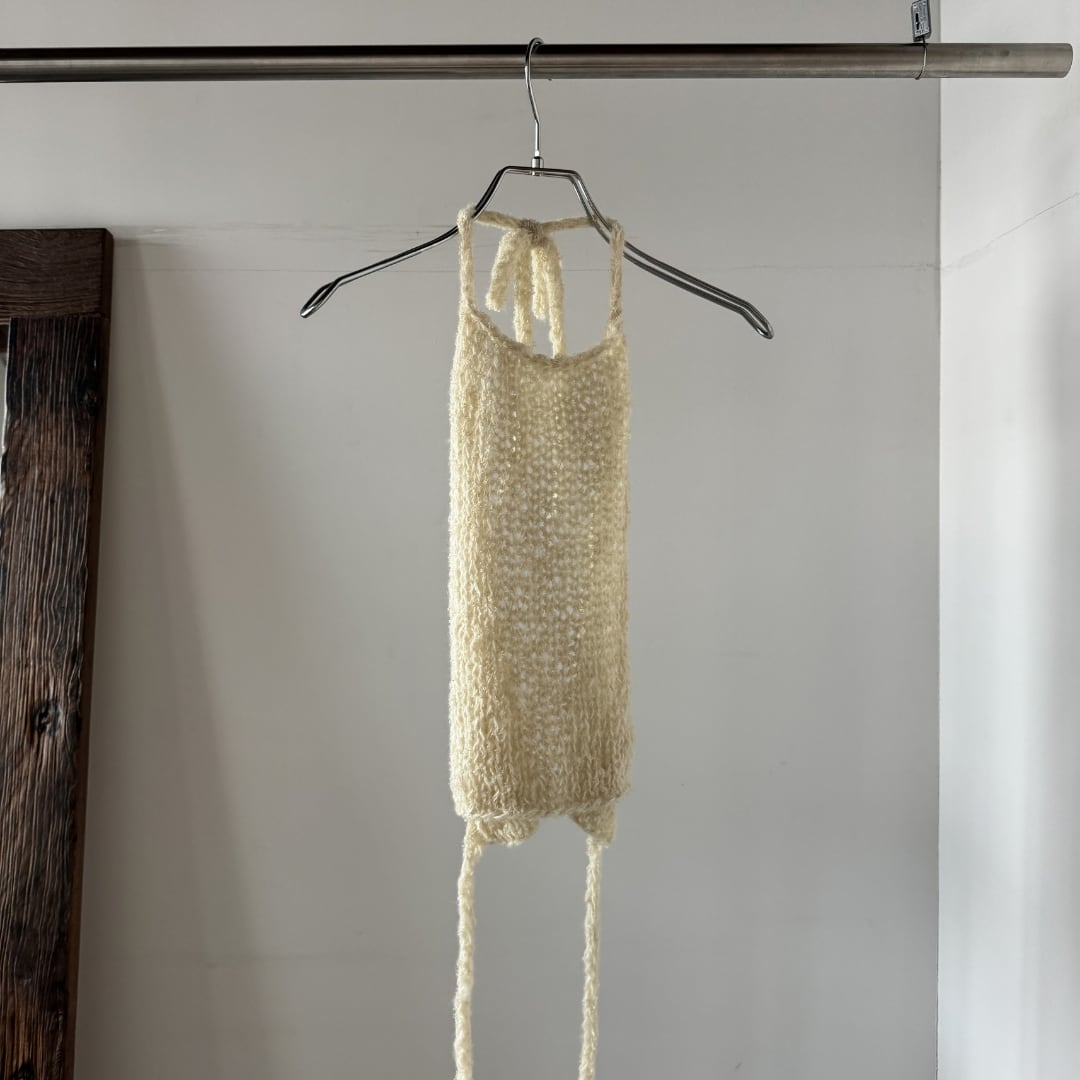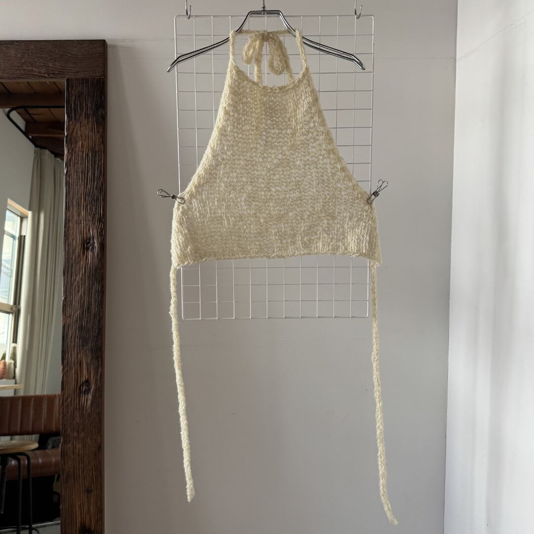 手編みのホルターネックニットトップ。