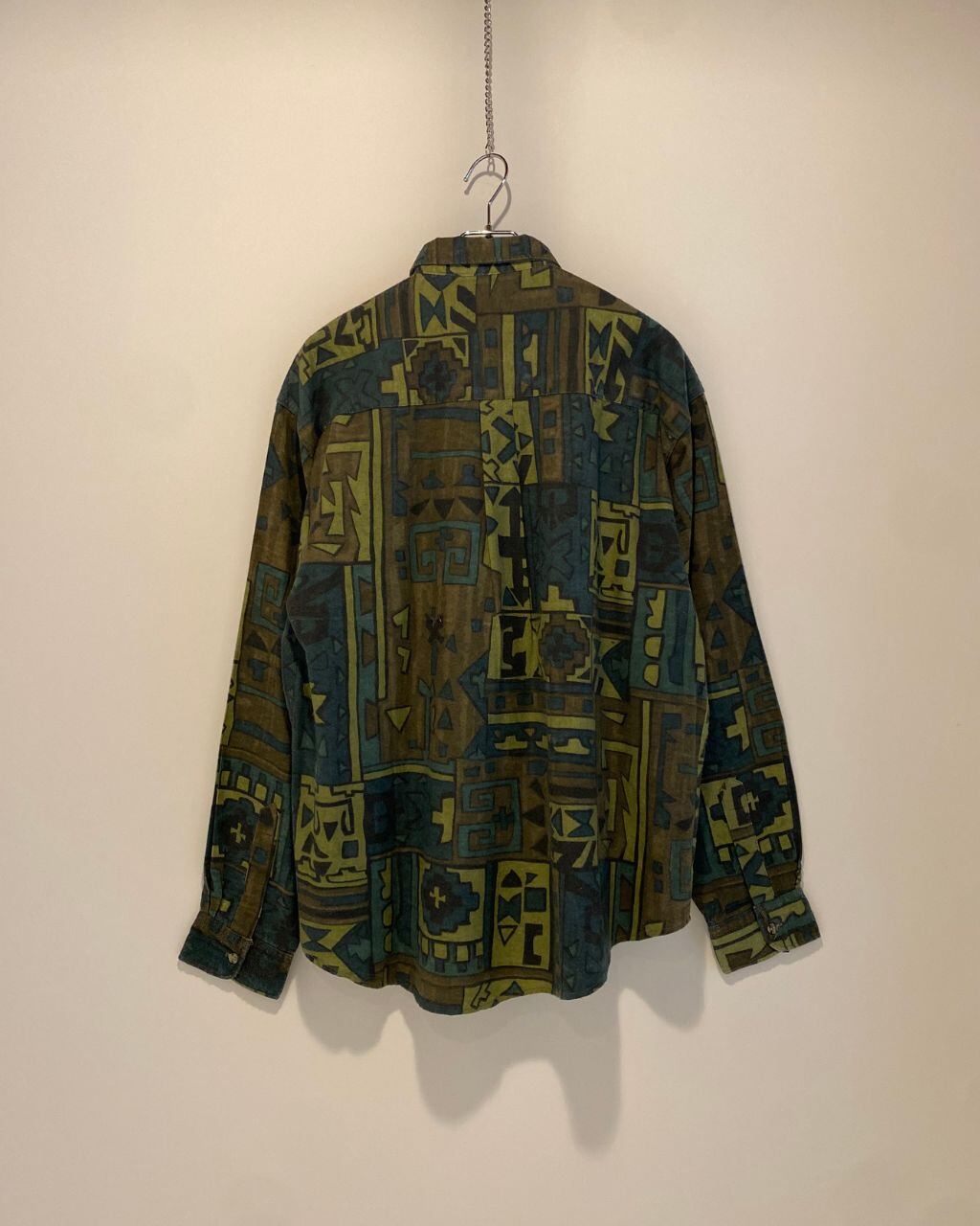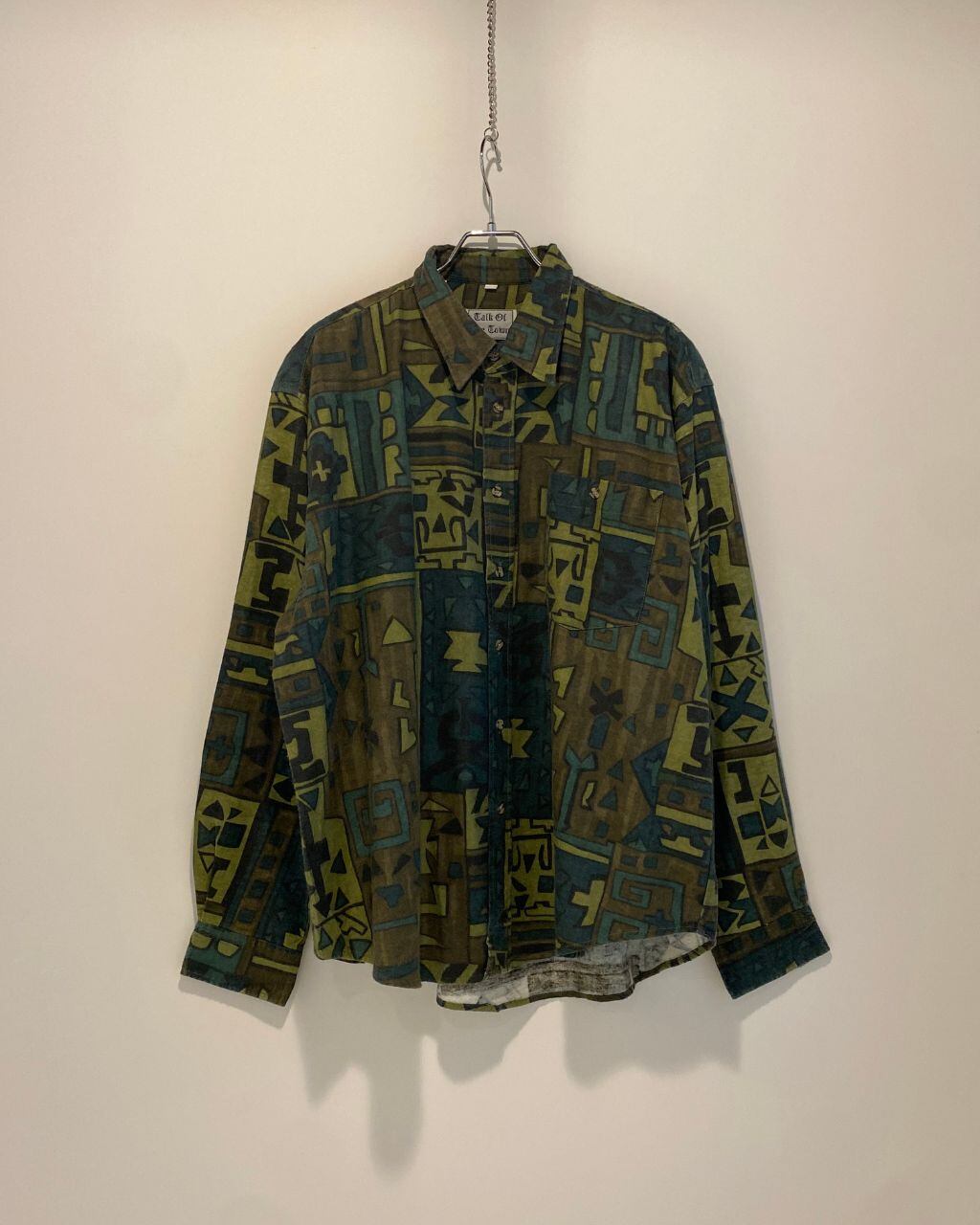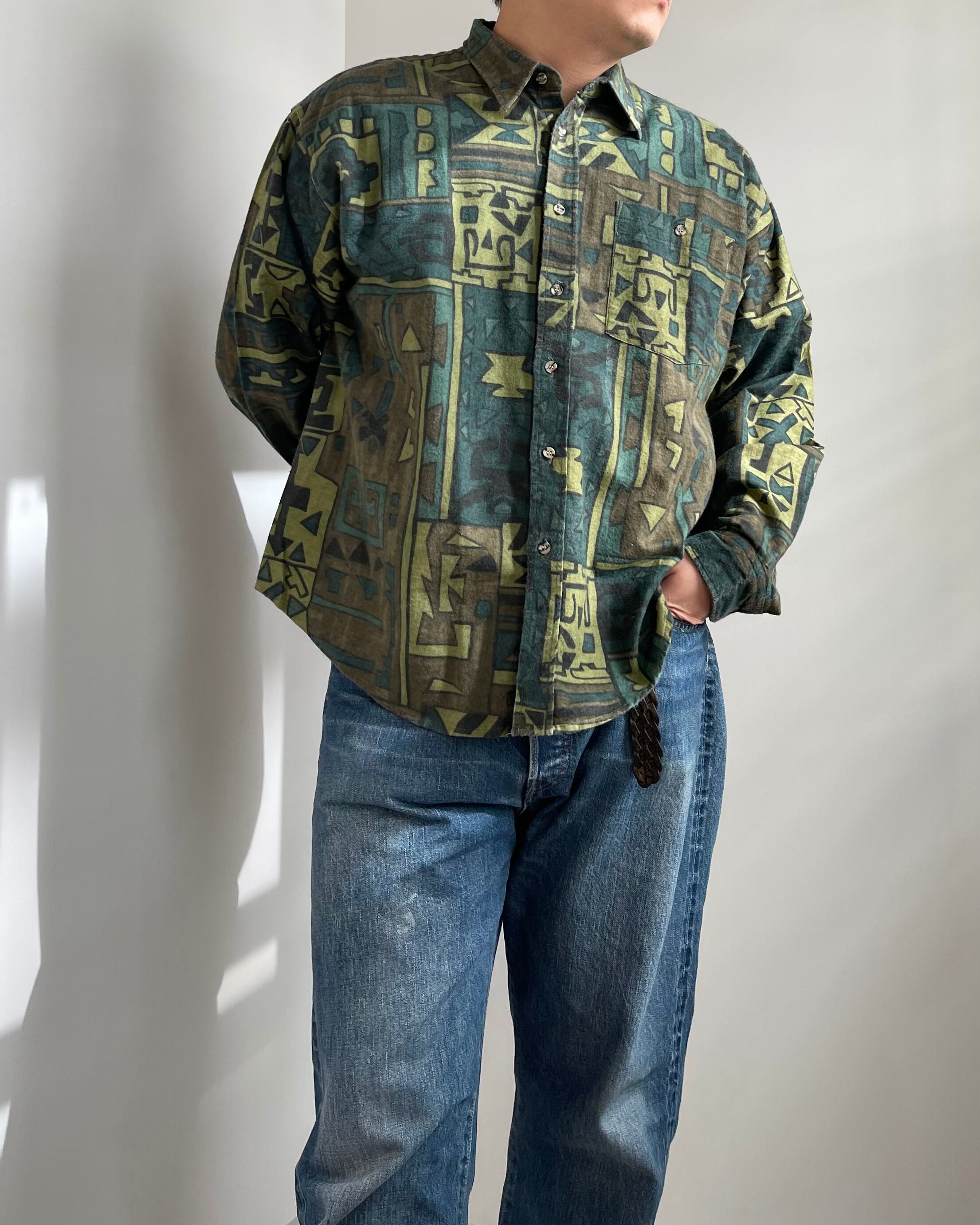 しっかりめ生地の総柄プリントウールシャツ。