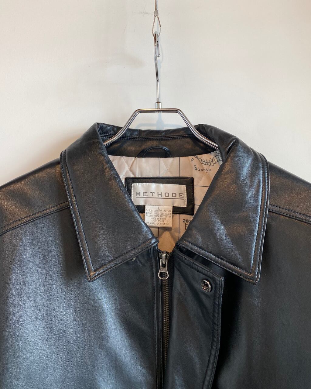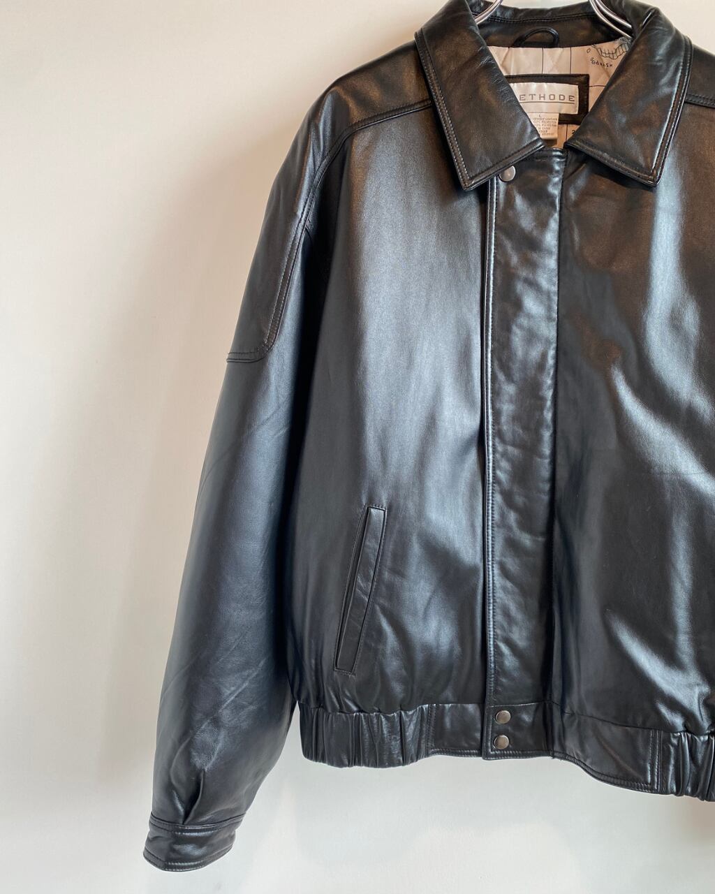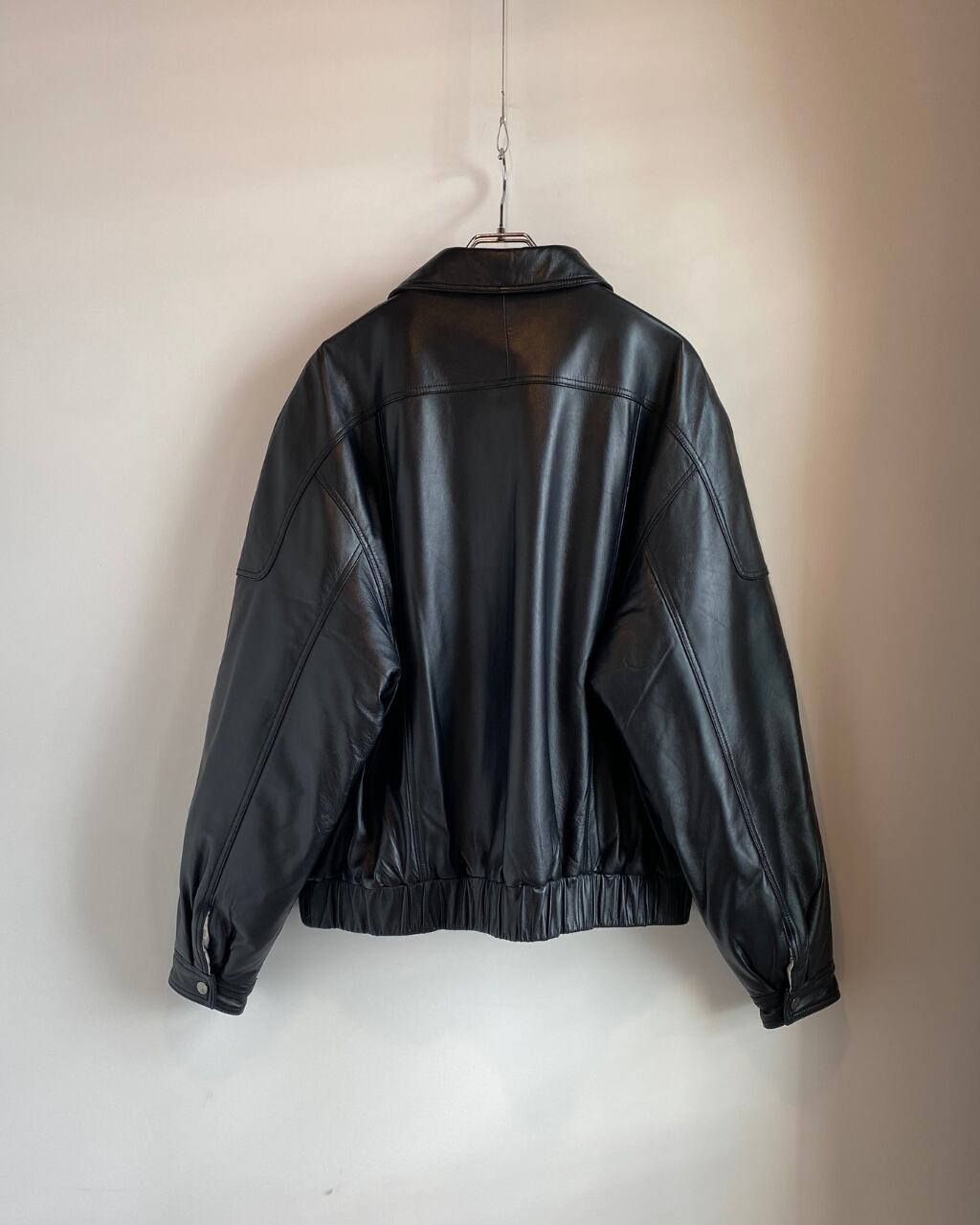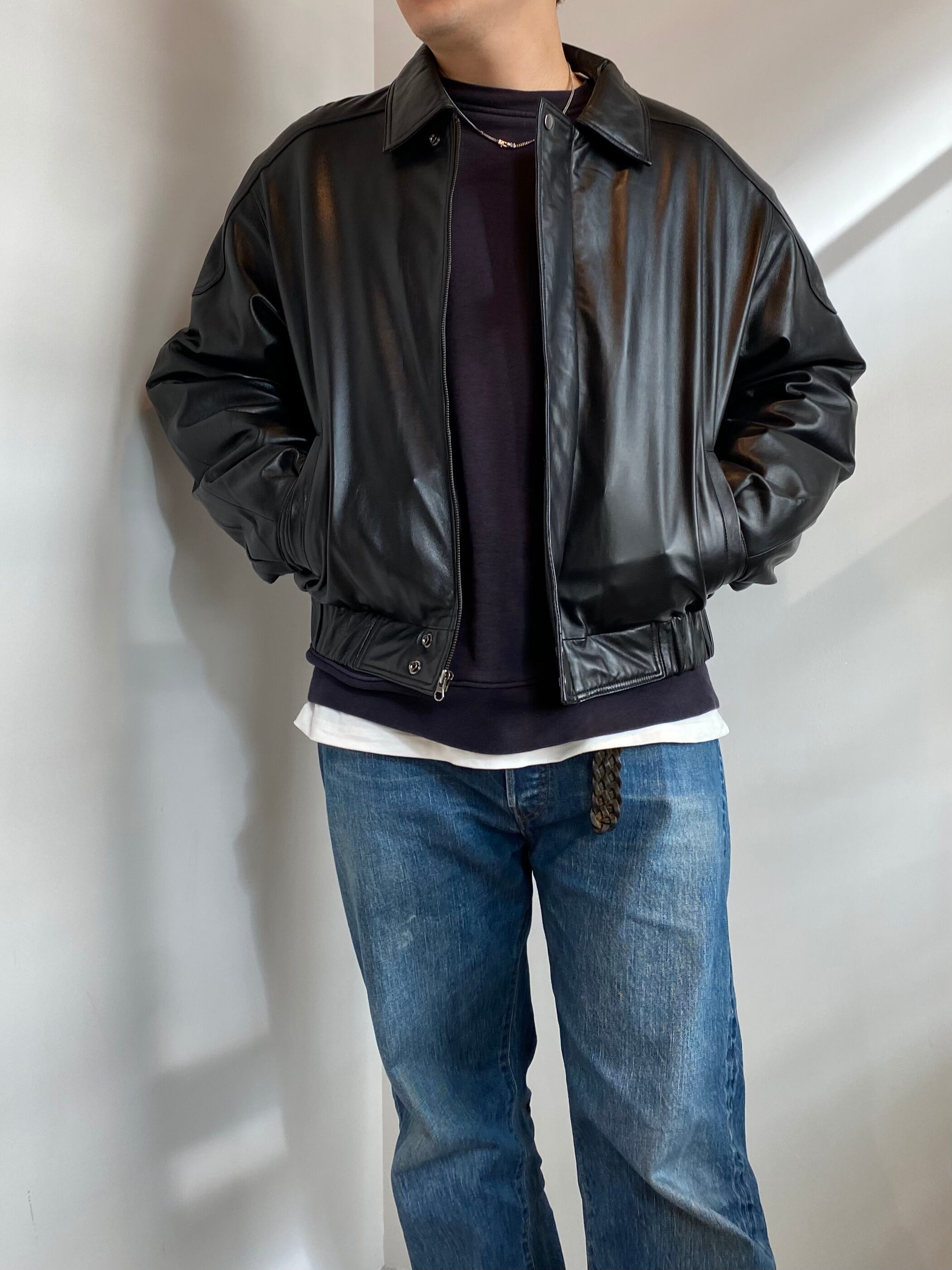 中綿入りのレザーブルゾン